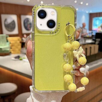 For iPhone 14 TPU + PC + Glitter Sequins Full Coverage Phone Case with Bracelet(Yellow)
