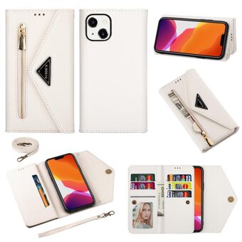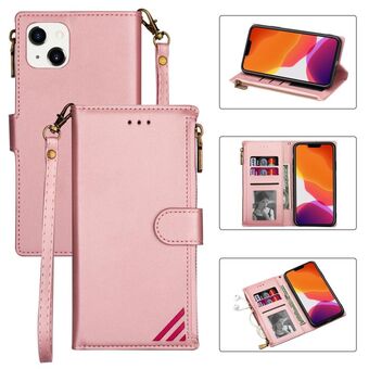 Θήκη δέρματος οριζόντιας αναδίπλωσης με φερμουάρ και πολλαπλές θήκες καρτών για iPhone 14 (Χρυσορόδινο)