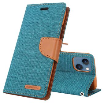 Θήκη τηλεφώνου GOOSPERY CANVAS DIARY για iPhone 14, με υφή καμβά και δερμάτινη κατασκευή (Γκρι) (GOOSPERY)