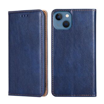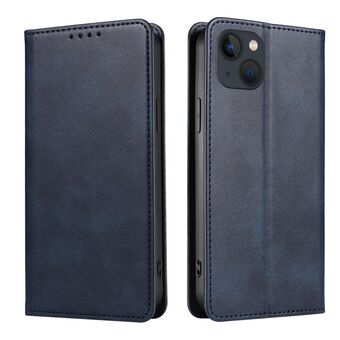 Θήκη για iPhone 14 με μαγνητικό κλείσιμο, δερμάτινη με υφή μοσχαριού (Μπλε)