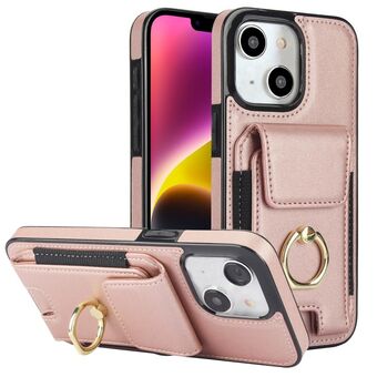 Θήκη τηλεφώνου για iPhone 14 με ελαστική τσέπη για κάρτες και δαχτυλίδι στήριξης (Λευκό)