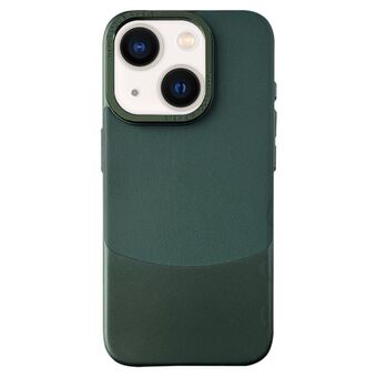 Θήκη τηλεφώνου για iPhone 14 από πολυανθρακικό υλικό με υφή Napa και δέρμα (Σκούρο Πράσινο)