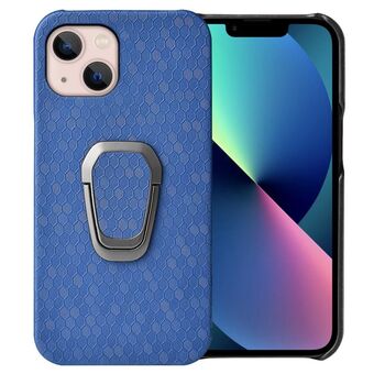 Θήκη τηλεφώνου για iPhone 14 με δακτύλιο στήριξης, από PU σε κυψελωτό σχέδιο (Ναυτικό Μπλε)