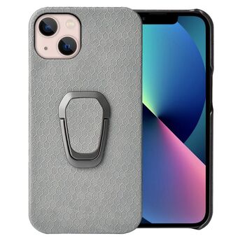 Θήκη τηλεφώνου για iPhone 14 με δακτύλιο στήριξης, από PU σε κυψελωτό σχέδιο (Καφέ)