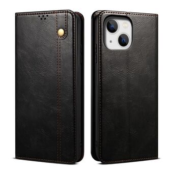 Θήκη δέρματος οριζόντιας αναδίπλωσης για iPhone 14, απλή, με τρελό άλογο και υφή κεριού (Σκούρο Πράσινο)