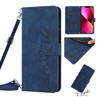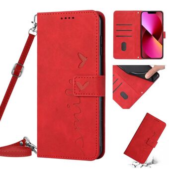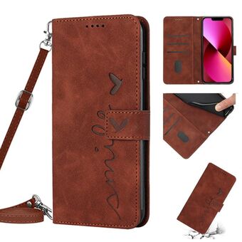 Θήκη τηλεφώνου από δέρμα με σχέδιο καρδιάς και αίσθηση δέρματος για iPhone 14 με κορδόνι (Καφέ)
