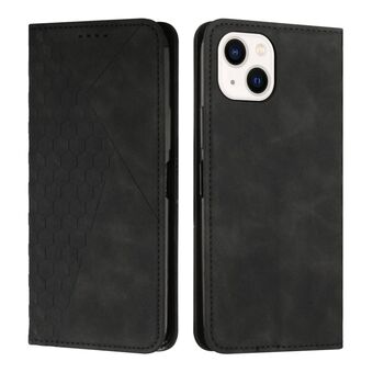 Θήκη τηλεφώνου μαγνητική για iPhone 14 με υφή δέρματος και σχέδιο διαμαντιού (Μαύρο)