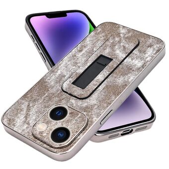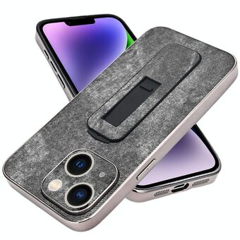 Θήκη τηλεφώνου με ψύξη για iPhone 14, μοτίβο τζιν, επιμεταλλωμένο, με αναδιπλούμενο στήριγμα (Γκρι)
