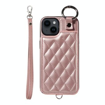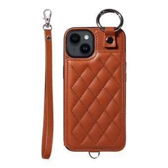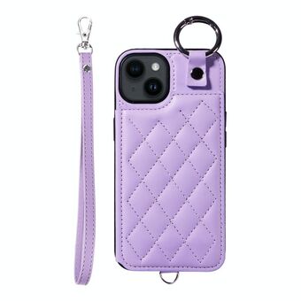 Θήκη τηλεφώνου για iPhone 14 με υφή ρόμβου και κοντό κορδόνι (Μωβ)