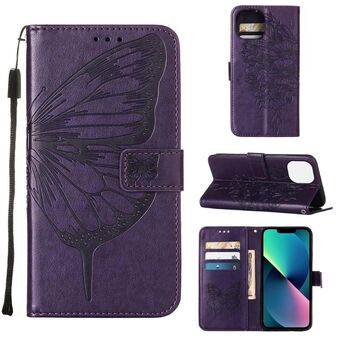 Θήκη τηλεφώνου δερμάτινη με ανάγλυφο σχέδιο πεταλούδας για iPhone 14 (Ανοιχτό Μωβ)