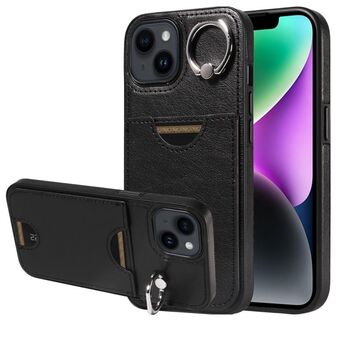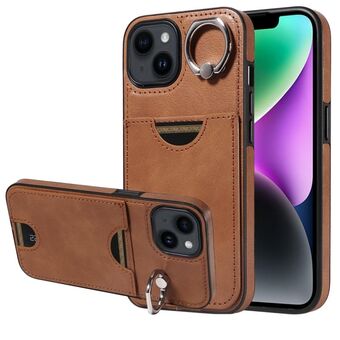 Θήκη τηλεφώνου για iPhone 14 με υφή δέρματος μοσχαριού, θήκη κάρτας και δαχτυλίδι στήριξης (Κόκκινο)
