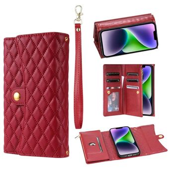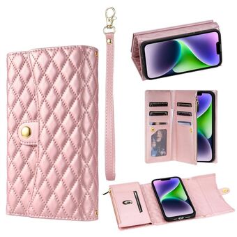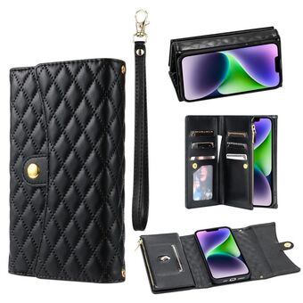 Θήκη τηλεφώνου από δέρμα σε σχήμα ρόμβου με φερμουάρ και πολλαπλές θήκες καρτών για iPhone 14 (Μαύρο)