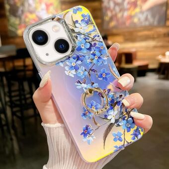 Θήκη τηλεφώνου TPU με δακτύλιο στήριξης και λουλούδι με λέιζερ και ηλεκτρολυτική επικάλυψη για iPhone 14 (Myosotis AH2)