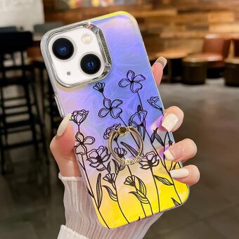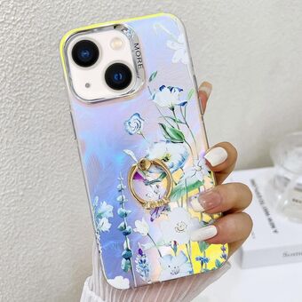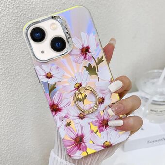 Θήκη τηλεφώνου TPU με δακτύλιο στήριξης, λουλουδάτο σχέδιο με λέιζερ και ηλεκτρολυτική επικάλυψη για iPhone 14 (Zinnia AH9)