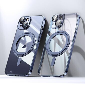 Θήκη τηλεφώνου για iPhone 14 με επιμετάλλωση PC, περιστρεφόμενη βάση δακτυλιδιού 360 και MagSafe (Διαφανές Μπλε)