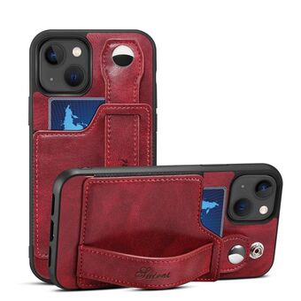 For iPhone 14 Suteni 215 Wrist Strap PU Phone Case(Red) (Suteni)