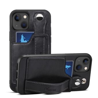 For iPhone 14 Suteni 215 Wrist Strap PU Phone Case(Black) (Suteni)