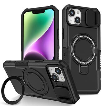 For iPhone 14 Plus Sliding Camshield MagSafe Holder TPU Hybrid PC Phone Case(Black)