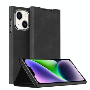 For iPhone 14 Plus Magnetic Napa Texture Leather Phone Case with Holder(Black)