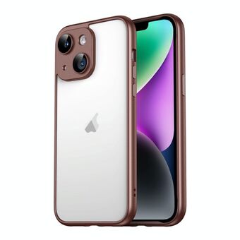 For iPhone 14 Plus Macaron PC Phone Pure Border Frame with Lens Glass Film(Brown)