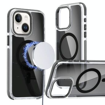 For iPhone 14 Plus Magsafe Dual-Color Transparent Black Full Coverage Phone Case(Black)