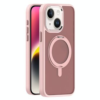 For iPhone 14 Plus Skin Feel Frosted MagSafe Magnetic Rotating Holder Phone Case(Pink)