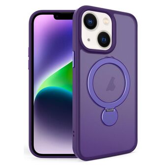 For iPhone 14 Plus 360 Degree Rotating MagSafe Magnetic Bracket Frosted Phone Case(Dark Purple)