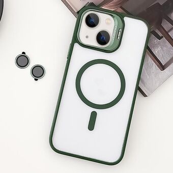 For iPhone 14 Plus MagSafe Acrylic Hybrid TPU Holder Phone Case with Lens film(Green)