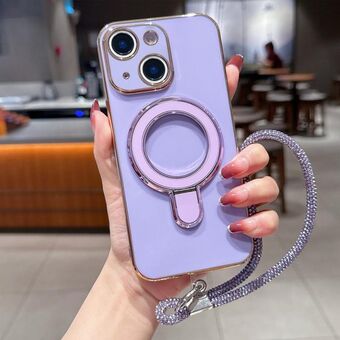 For iPhone 14 Plus Solid Color Electroplated Metal Holder Phone Case(Dark Purple)