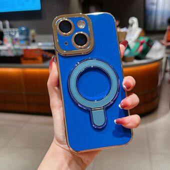For iPhone 14 Plus MagSafe Magnetic Metal Holder Phone Case(Blue)