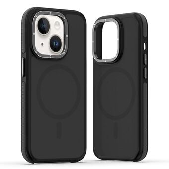 For iPhone 14 Plus Invisible Lens Holder PC + TPU Frosted MagSafe Phone Case(Black)