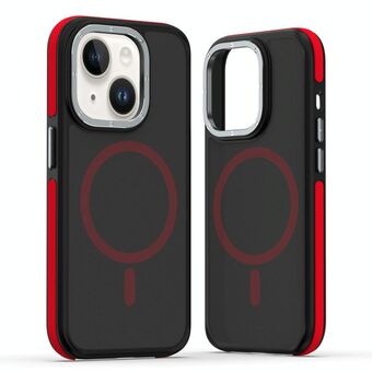 For iPhone 14 Plus Frosted Holder PC Hybrid TPU MagSafe Phone Case(Rose Red)