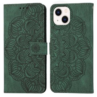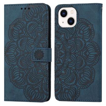 Θήκη τηλεφώνου τύπου flip από δέρμα με ανάγλυφο μαντάλα για iPhone 14 Plus (Μωβ)