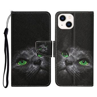 Θήκη τηλεφώνου από δέρμα με σχέδιο 3D και αναδιπλούμενο καπάκι για iPhone 14 Plus (Μαύρη Γάτα)