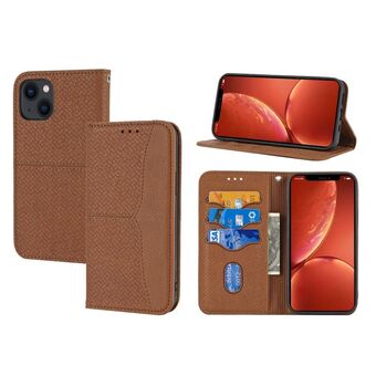 Θήκη δέρματος με υφαντή υφή για iPhone 14 Plus (Καφέ)