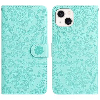 For iPhone 14 Plus Floral Embossed Pattern Leather Phone Case(Light Green)