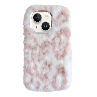For iPhone 14 Plus Leopard Print Plush TPU Phone Case(Pink)