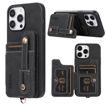 Θήκη τηλεφώνου για iPhone 14 Plus ABEEL με υφή δέρματος λυτσί, κάρτα και υλικό PU (Μαύρο)