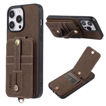 Θήκη τηλεφώνου με δακτύλιο στήριξης και διπλό κορδόνι για iPhone 14 Plus, κάθετη θήκη καρτών (Μπεζ)