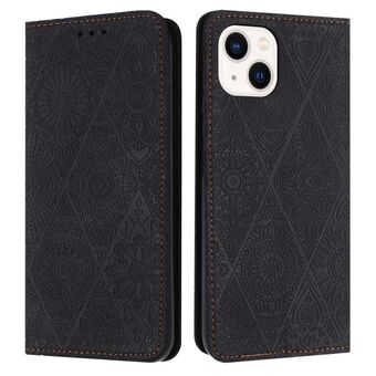 Θήκη τηλεφώνου από δέρμα με απορρόφηση και εθνοτικά ανάγλυφα για iPhone 14 Plus (Μωβ)