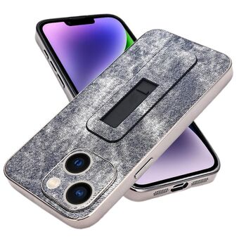 For iPhone 14 Plus Denim Pattern Electroplated Push-pull Bracket Cooling Phone Case(Grey Blue)