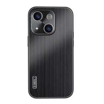 For iPhone 14 Plus PC Hybrid Aluminum Alloy Brushed Shockproof Phone Case(Black)