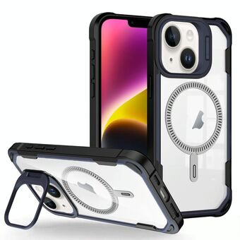 For iPhone 14 Plus Transparent Acrylic MagSafe Lens Holder Phone Case(Navy)