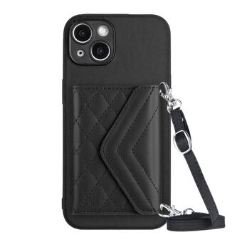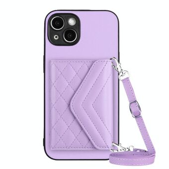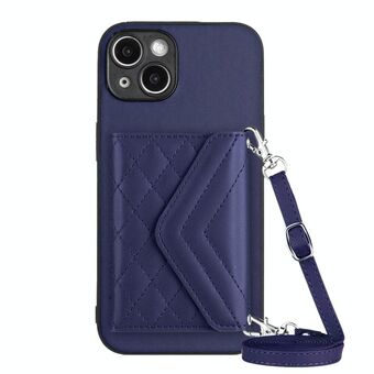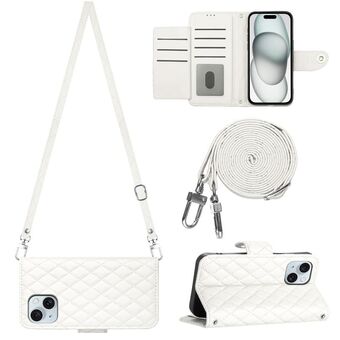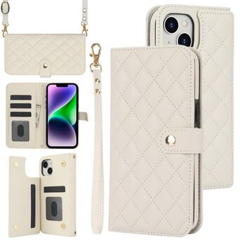 Θήκη τηλεφώνου για iPhone 14 Plus, πολυλειτουργική, δερμάτινη με ρόμβους, σε σχήμα crossbody (Λευκό)