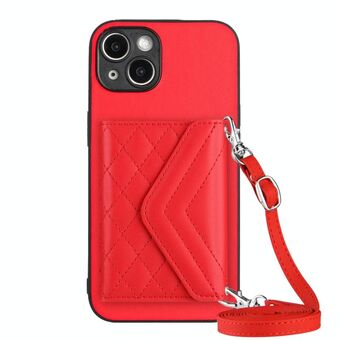 Θήκη τηλεφώνου από δέρμα με ανάγλυφη υφή ρόμβου για iPhone 14 Plus με μακρύ κορδόνι (Κόκκινο)