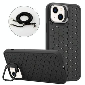 Θήκη τηλεφώνου MagSafe για iPhone 14 Plus με σχέδιο κυψελωτού, ακτινωτή βάση φακού και λουρί (Μαύρο)