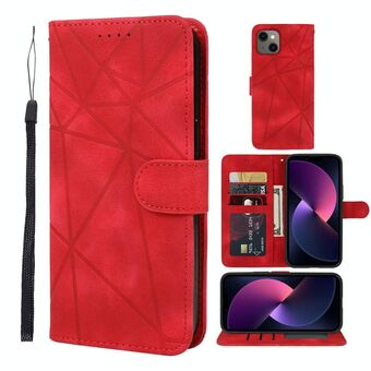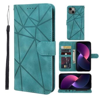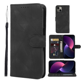 Θήκη τηλεφώνου δερμάτινη με γεωμετρικά σχέδια και αίσθηση δέρματος για iPhone 14 Plus (Μαύρο)
