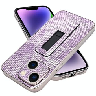 Θήκη τηλεφώνου με ψύξη για iPhone 14 Plus, μοτίβο τζιν, επιμεταλλωμένο, με αναδιπλούμενο στήριγμα (Ροζ Μωβ)