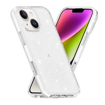 Θήκη κινητού τηλεφώνου πλήρους κάλυψης για iPhone 14 Plus / 15 Plus, διχρωμία, διαφανής με γκλίτερ TPU + TPE (Λευκό με γκλίτερ)