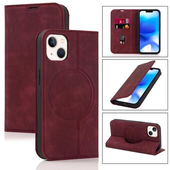 Θήκη κινητού τηλεφώνου για iPhone 14 Plus, με υφή δέρματος, MagSafe, μαγνητική, TPU + PC (Καφέ)